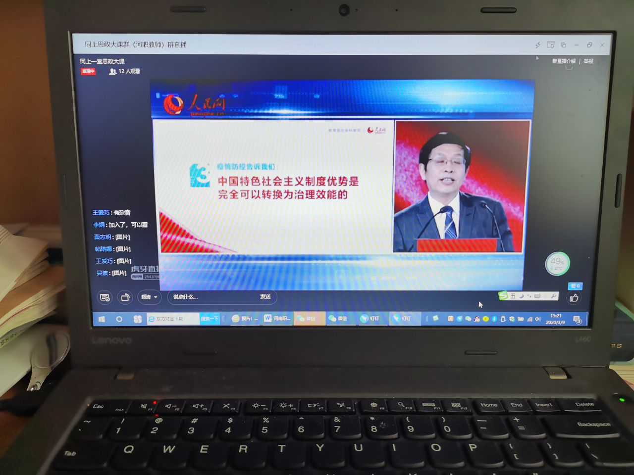 全校思政课专兼职教师25人认真学习了艾四林教授的《在抗击疫情斗争中深化理论认识》、秦宣教授的《疫情大考告诉我们什么》、王炳林教授的《总结历史经验,增强必胜信心》和冯秀军教授的《战“疫”里的最美青春——谈中国青年的责任与担当》四位教授的精彩授课。