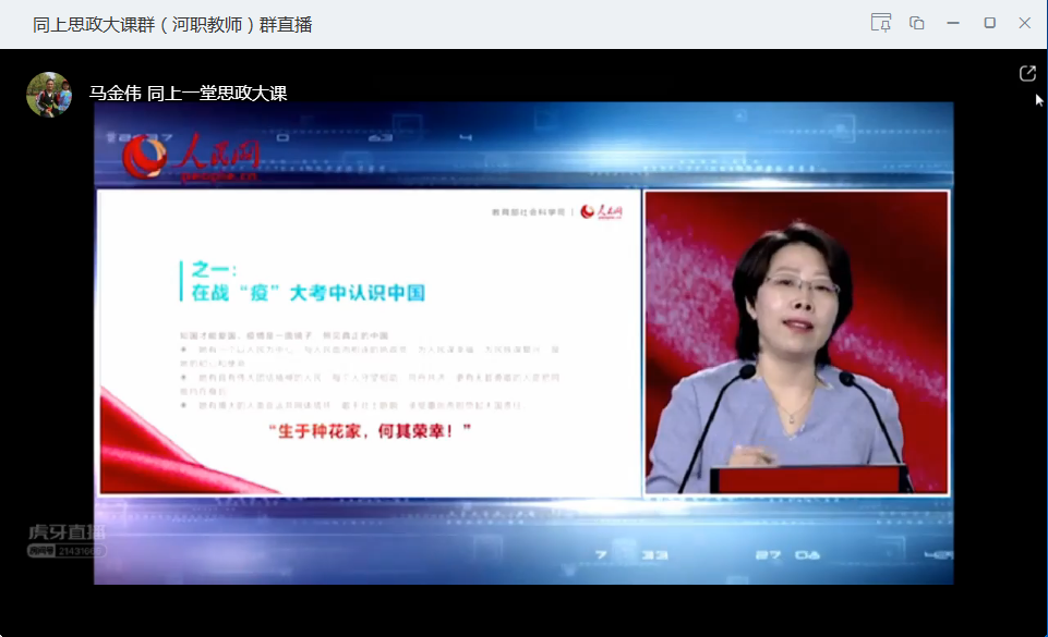 观看结束后,全体思政教师以视频会议的形式展开讨论。大家普遍认为,此次授课对老员工来说是一堂疫情防控思政大课,对全体思政课教师来说,也是一堂堂生动的教学观摩课。