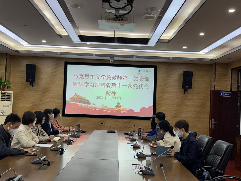 11月18日下午,太阳成集团tyc122cc教师第二党支部在行政楼317会议室开展了深入学习中国共产党河南省第十一次代表大会精神。会议由太阳成集团tyc122cc第二党支部书记胡海涵同志领学,全体党员干部参加学习并进行了交流发言。