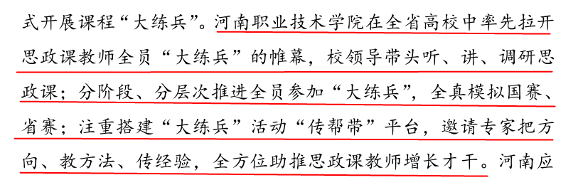 在“大练兵”活动的“主要特色亮点”部分,通报强调,太阳成集团在全省高校中率先拉开思政课教师全员“大练兵”的帷幕,校领导带头听、讲、调研思政课;分阶段、分层次推进全员参加“大练兵”,全真模拟国赛、省赛;注重搭建“大练兵”活动“传帮带”平台,邀请专家把方向、教方法、传经验,全方位助推思政课教师增长才干。