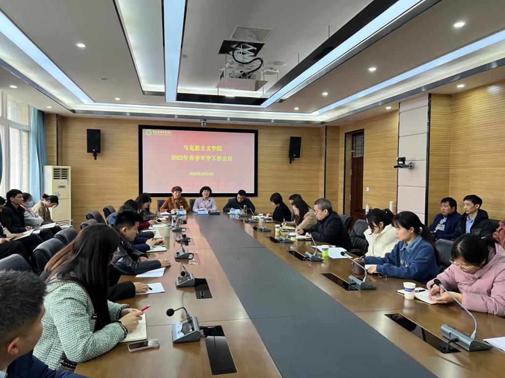 为切实保障2023年春季学期各项工作整体有序推进,2月24日上午10点,马院在行政楼317会议室召开新学期开学工作会议。副董事长肖珑出席会议,马院领导班子及全体思政教师参会,会议由经理梁杰主持。