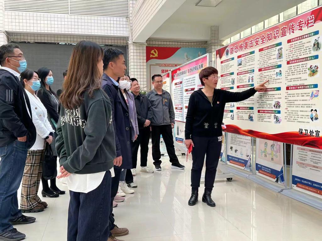 教师们首先在行政楼一楼大厅参观学习了展板内容《严厉打击暴恐活动 维护社会安全稳定》,深入了解了常见的恐怖袭击手段、识别恐怖嫌疑人的方式以及相应的应对措施。