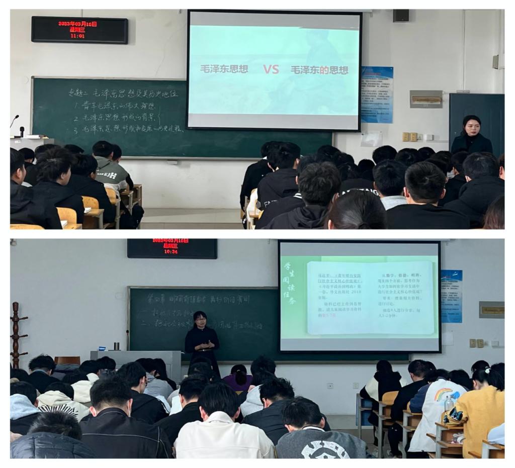 汇报结束后,专家组根据课程表随机选取了张倩老师的《毛泽东思想和中国特色社会主义理论体系概论》课、常丽丽老师的《思想道德与法治》课进行听课并认真做了记录。